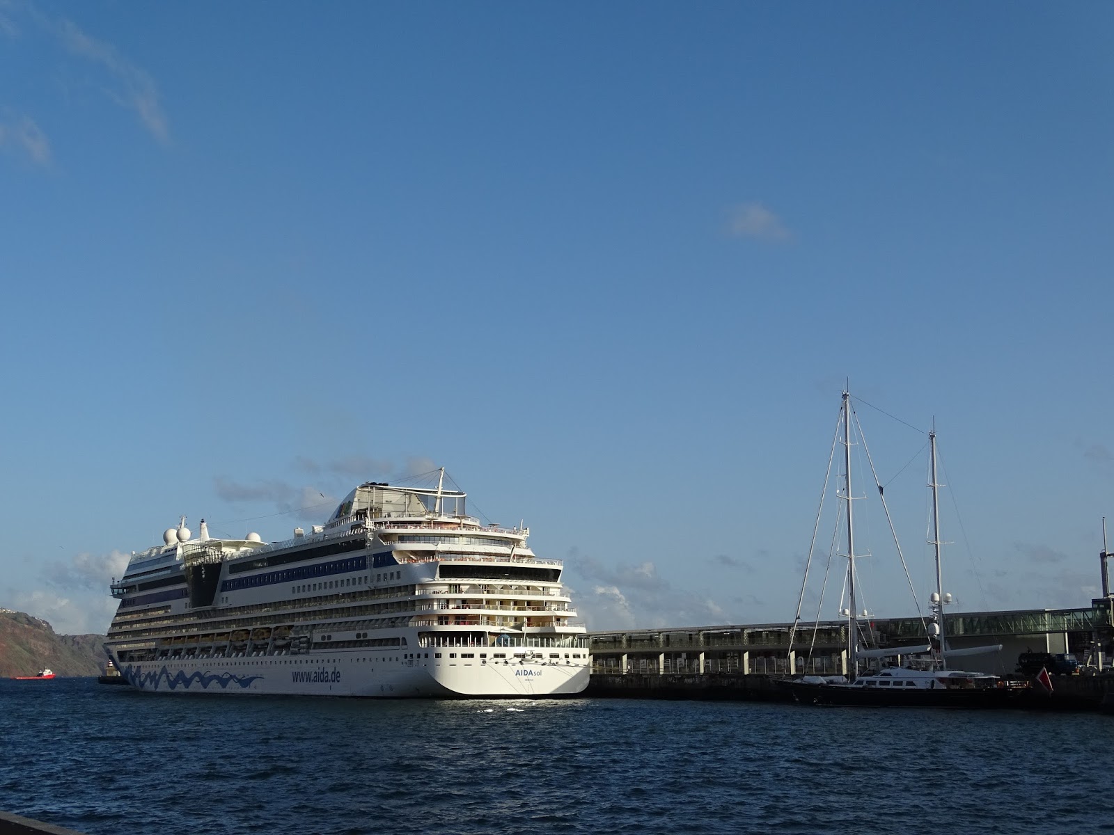 Hoje foi dia de AIDAsol, da companhia AIDAcruises no Funchal na sua tradicional viagem pelas ilhas Atlânticas. Atracou pelas 7h, vindo de Las Palmas e rumou pela madrugada do dia seguinte pelas 5h30m, rumo à ilha de Lanzarote.