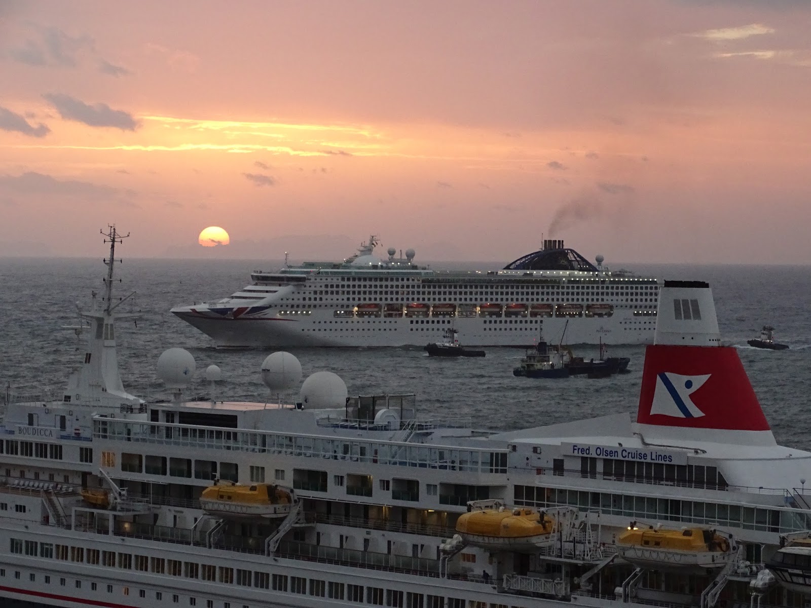 Hoje pela manhã começou a chegar pelas 6h, o navio de passageiros Boudicca da companhia Fred. Olsen Cruise Lines, depois pelas 7h o Oceana da companhia P&O Cruises, , e pelas 8h começou a aparecer na baía do Funchal o Marco Polo da companhia Cruise e Maritimes Voyages. O navio AIDAcara da companhia AIDA cruises, chegou ontem pelas 17h, e pernoitou no cais norte.