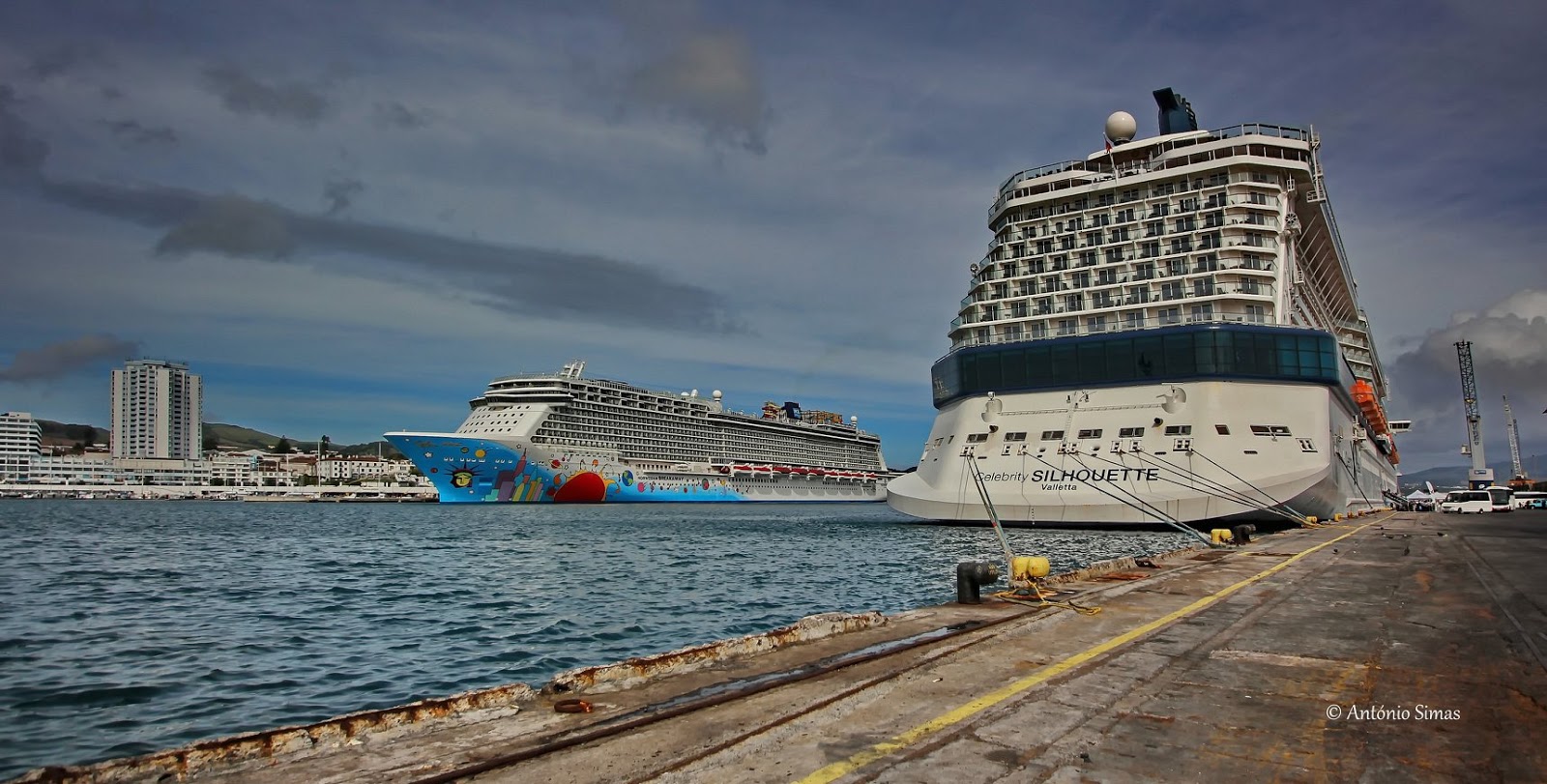 O navio Celebrity Silhouette atracou pelas 13h, no cais comercial vindo de Southampton, na sua viagem pelas Ilhas Atlânticas e tem agendada a sua saída pelas 23 horas, rumo ao Funchal na ilha da Madeira.