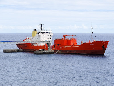 Hoje a tarde no Porto do Caniçal, novamente com movimento de navios carga, com a saída do Rebecca S do cais norte para fundeadouro pelas 16h.